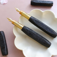 サンセットニブはWancher製のセミフレックスハードニブで、F(細字)サイズですが強弱をつけることで太さに変化が出ます。 ペン芯はプラスチックのみとなっています。 デザインと仕様についての詳細はこちらをご覧ください。