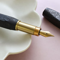 【ご購入前にご理解ください】 ひとつひとつ熟練した職人による丹念な手作業で制作しております。また仕掛紋紗という技法は漆の乾燥時間の絶妙な調整が必要になったりと、とても手間のかかる工程の積み重ねにより完成されます。そのため、万年筆のメダルやトリムなどの金属部分に手作業ならではの漆の跡が残りますが、それもこの仕掛紋紗の風合いとしてどうぞお楽しみください。