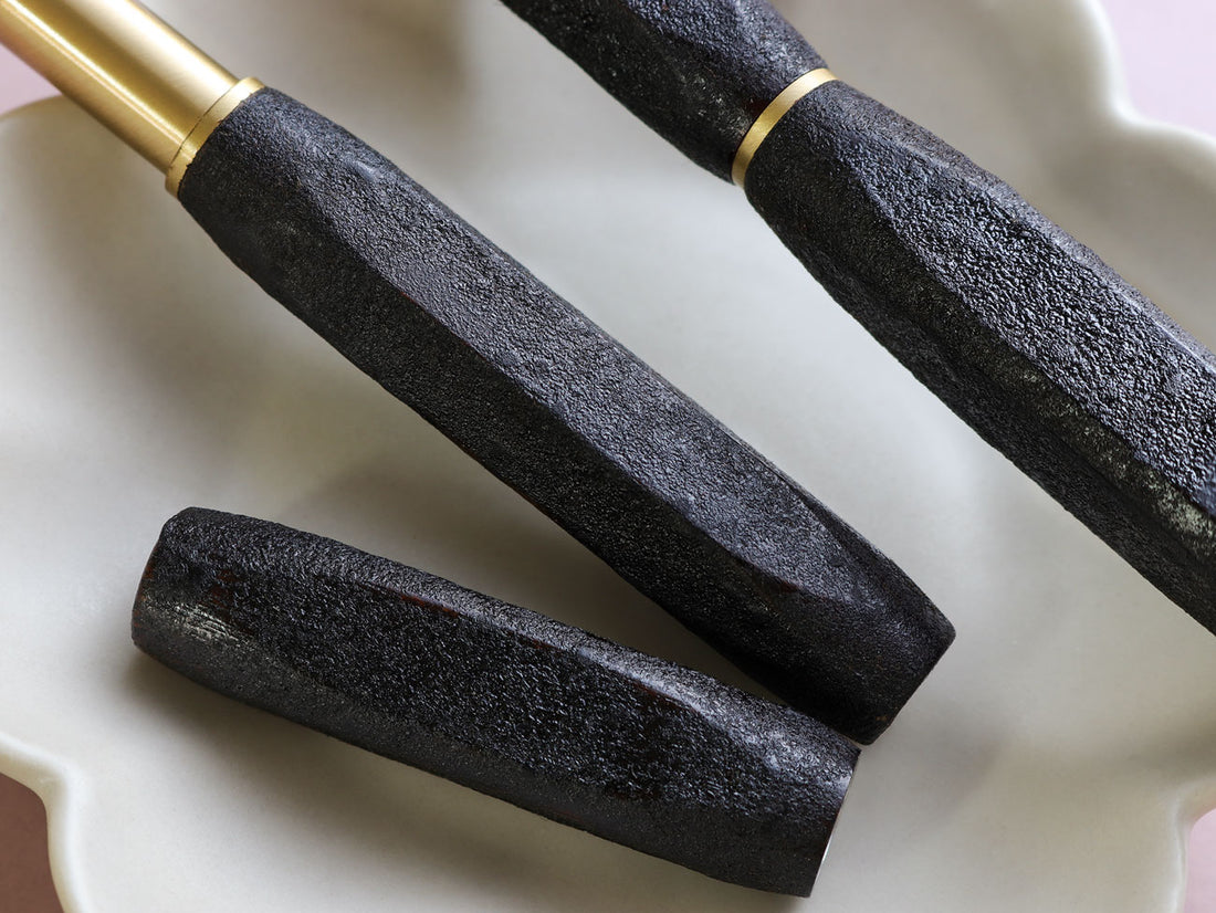 シリーズ~KINMA-edition~」プロジェクトをスタートしました。更に『蒟醤(きんま)』=『彫込』=「曲面より平面の方がデザインの可能性が拡がる」ため世界樹万年筆”伝承”(多角形)が生み出されました。現在、タイおよび日本で蒟醤塗万年筆の作品作りを一生懸命進めております。