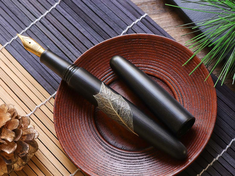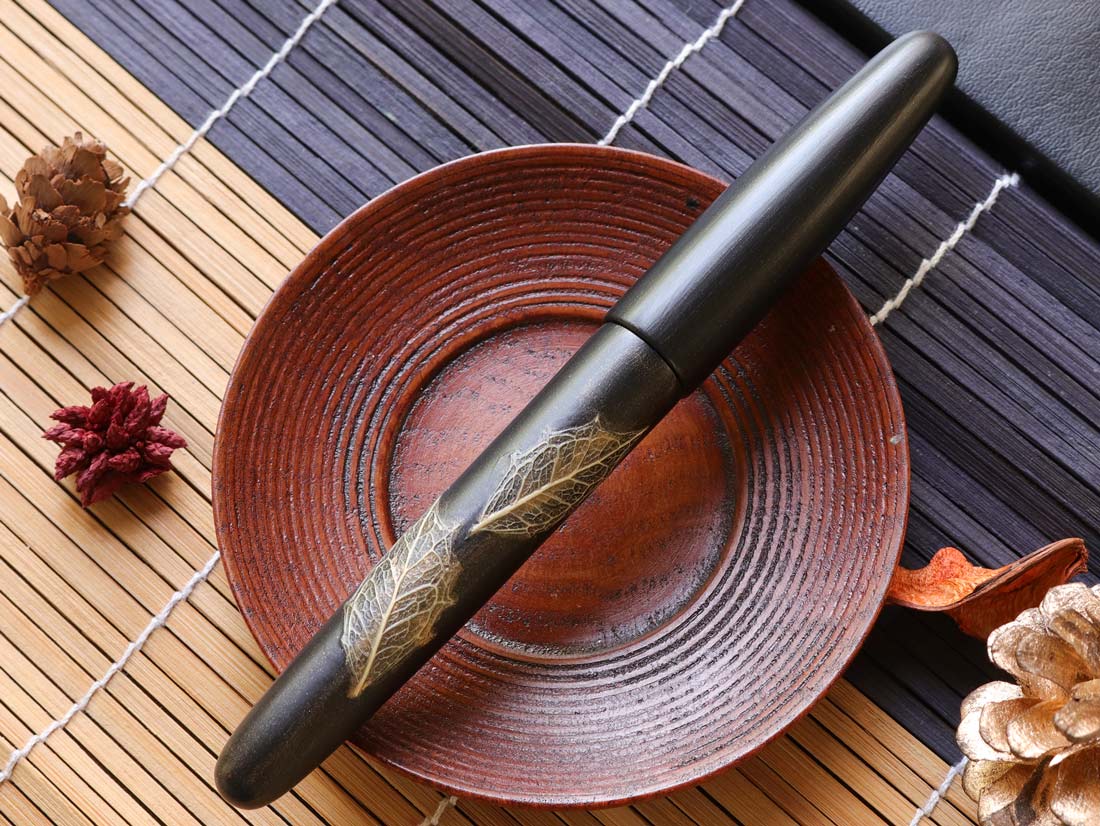 季映万年筆は日本の天然エボナイトをベースに手作りされています。その上に、天然漆、つや消し漆、天然葉、金粉が使われています。