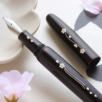 「象嵌 徒桜」には、象嵌/ゾウガンと呼ばれる日本の伝統工芸を施しています。 「象(ゾウ)」は「かたどる」、「嵌(ガン)」は「はめる」という意味で、一つの素材に異なった素材を嵌め込む技法のことを言います。 象嵌の魅力は、光の角度によって色が変化することです。 貝殻の真珠層を一つ一つ手作業でカットし、熟練した職人が繊細な技でペン本体に嵌め込んでいきます。 ドリームペン「象嵌 桜の川」はエボナイト素材を使用し、漆を塗り重ねた後に象嵌を施しています。 その為完成までには何ヶ月もの時間を必要とします。 日本の春の美しい景色を表現したドリームペン「象嵌 桜の川」。 貴重なエボナイト素材と日本の伝統工芸である漆塗りと象嵌の美しさを存分にお楽しみください。